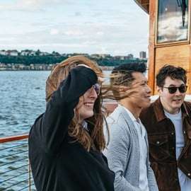 Cruise aboard the decks of an elegant 1920's-style yacht, for an educational architecture tour around Manhattan, hosted by architects and members of the American Institute of Architects New York Chapter (AIANY).